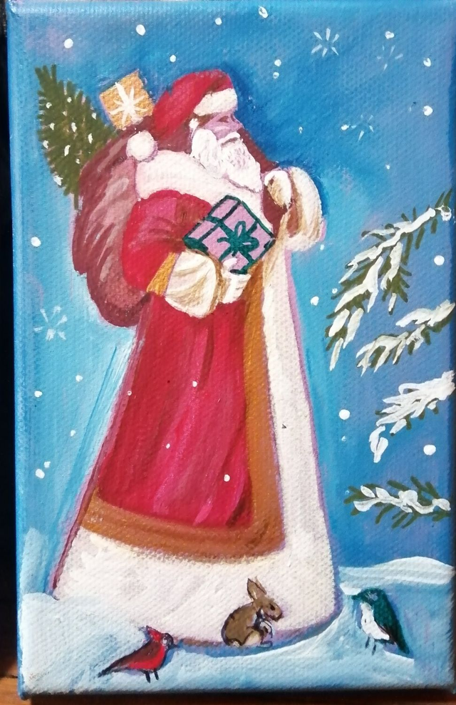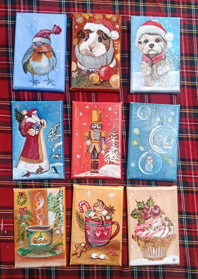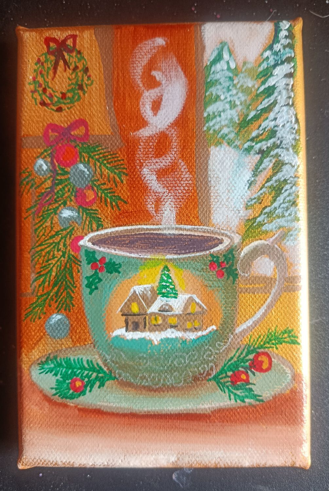 Peinture acrylique sur toile tendue sur châssis bois 15x10x2 cm. Verni et prêt à suspendre avec crochet.