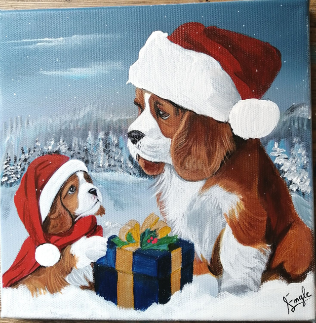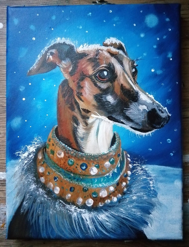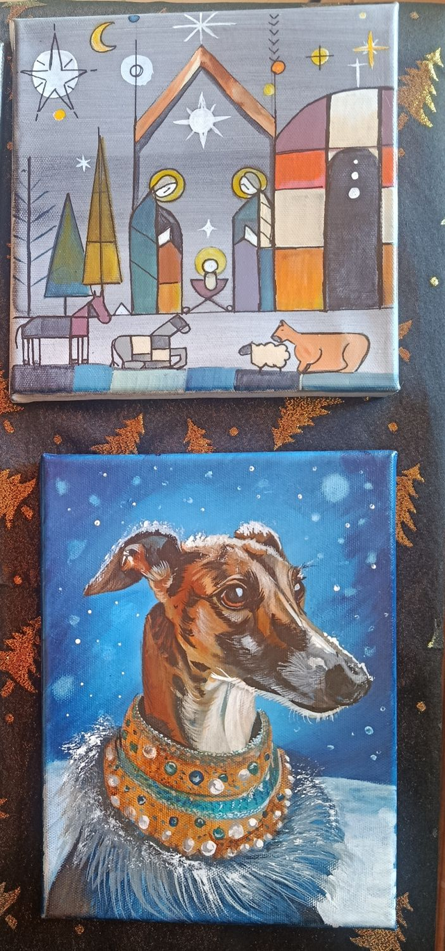 Oeuvres originales peintes à la main à la peinture acrylique sur toile tendue sur châssis bois de 20x20 cm ( ou 18x24cm pour le lévrier).
