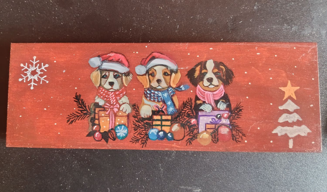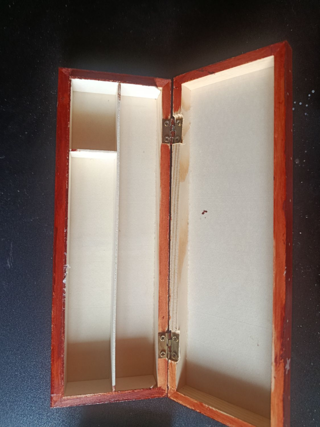 Plumier en bois peint à la main et extérieur verni. Dimensions 7,5 x 22 cm. Chaque pièce est unique.